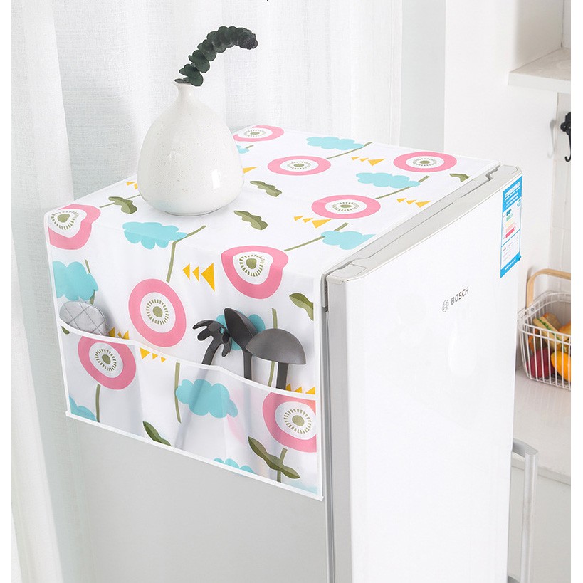 VẢI PHỦ TỦ LẠNH CÓ NGĂN ĐỂ ĐỒ SIÊU TIỆN ÍCH-Được làm từ chất liệu vải nilon không thấm nước, sản phẩm giúp bảo vệ cho máy giặt, tủ lạnh, lò vi sóng nhà bạn không bị ướt nước, bụi bẩn, tăng tuổi thọ và thời gian sử dụng. Đặc biệt chú trọng đến tính tiện dụng nên sản phẩm được thiết kế gọn, nhẹ, dễ tháo lắp và vệ sinh khi cần thiết. Tấm phủ tủ lạnh và lò vi sóng có nhiều màu sắc và hoa văn trang nhã, phù hợp với không gian phòng tắm và phòng bếp. Sản phẩm phù hợp với mọi gia đình, vì thế bạn có thể mua sử dụng hoặc làm quà tặng cho bạn bè, người thân đều được.