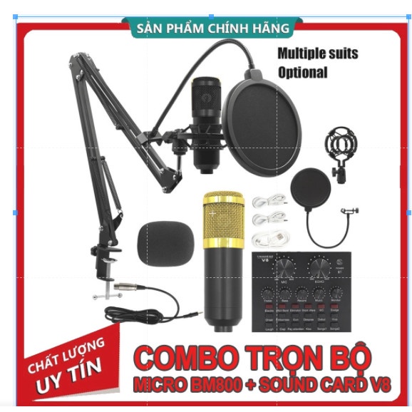 Thiết Bị Âm Thanh > Micro thu âm || [ SALE LỚN ] COMBO Micro Thu Âm Giá Rẻ BM800 + Soud Card V8 kèm đầy đủ phụ kiệnCòn hàng