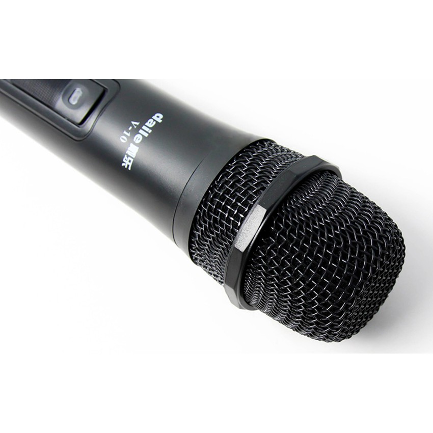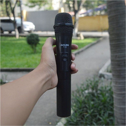 Micro không dây Daile V10 dành cho loa karaoke xách tay di động, loa kẹo kéo, loa bluetooth, amply hát karaoke tại nhà. Micro karaoke Daile V10 có thiết kế khá vừa tay, cầm thoải mái, âm thanh trung thực và đặc biệt rất dễ sử dụng.
