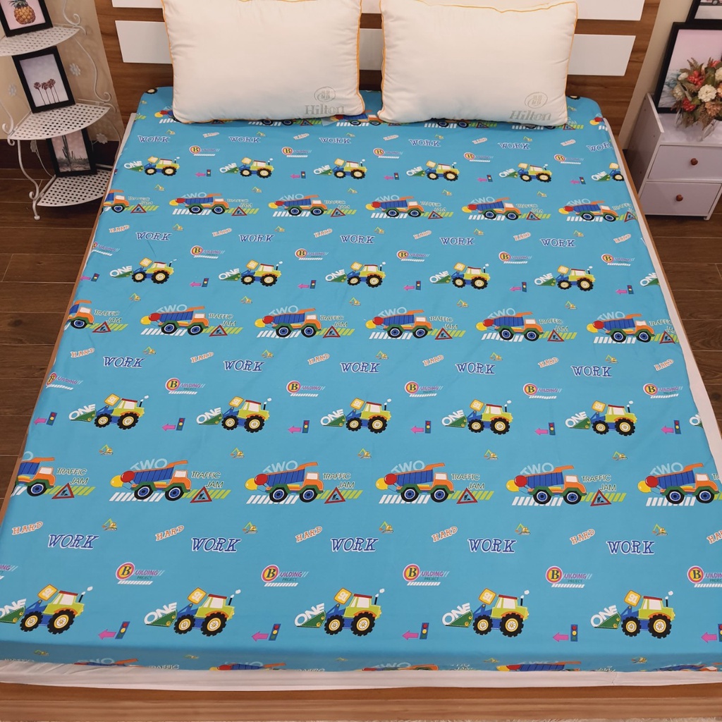 Giới thiệu (SALE LỚN) Tấm ga bọc giường cotton chống thấm tuyệt đối hoạ tiết hoạt hình ngộ nghĩnh mẫu Ô tô | Drap chống nước cotton
