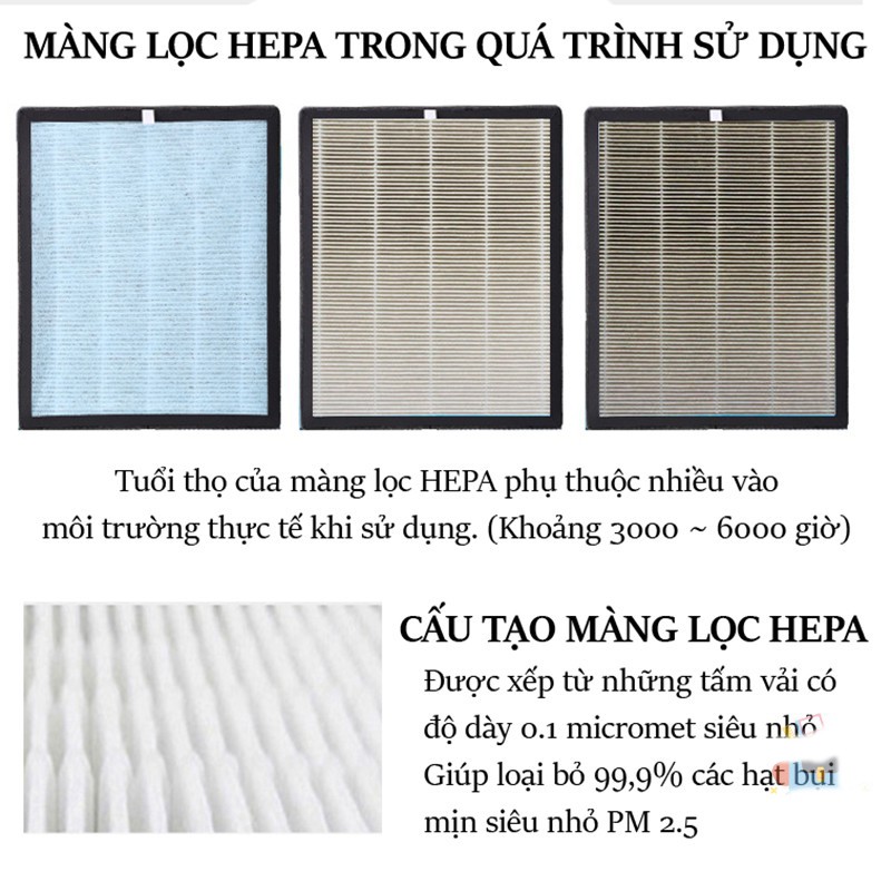 Giới thiệu [SALE] Màng lọc HEPA và THAN HOẠT TÍNH 3 lớp cao cấp cho máy lọc không khí - lọc bụi PM2.5, khử mùi, khử khuẩn