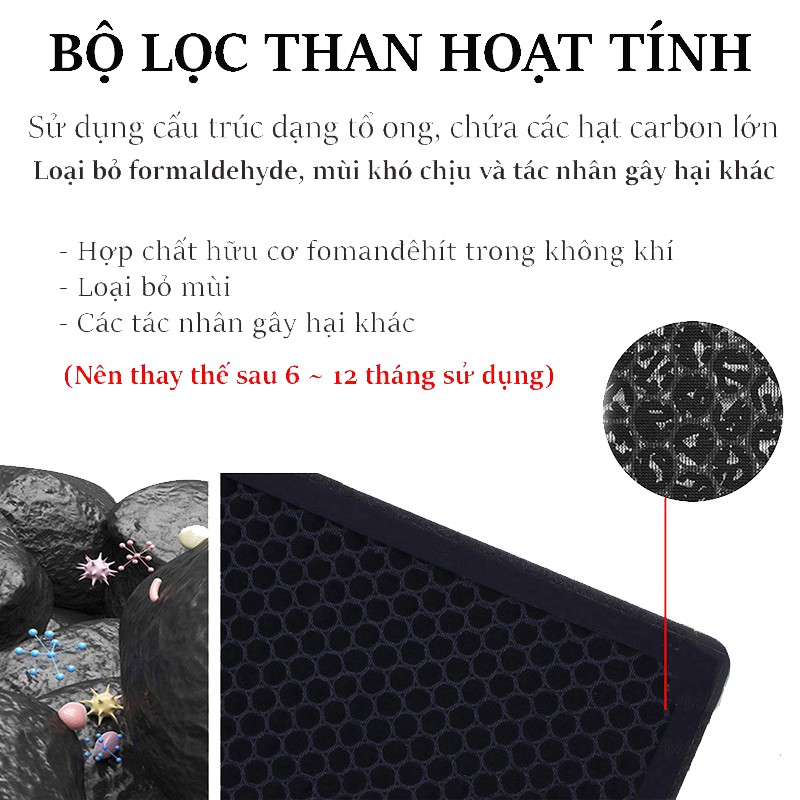 - Chức năng chính: lọc không khí, loại bỏ khói bụi, phân hủy Formaldehyd và Benzen