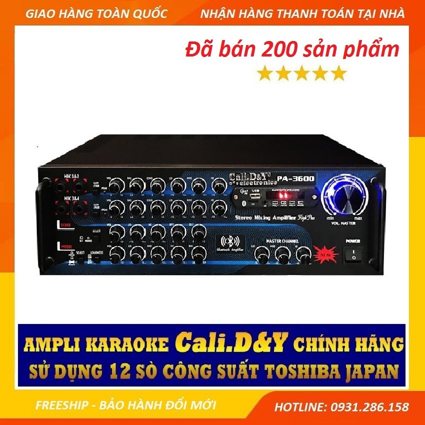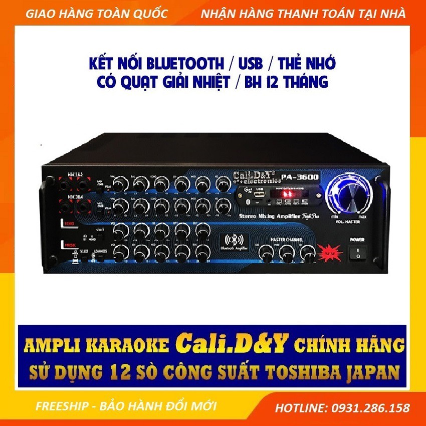[Sale mừng Sinh nhật] Amply 12 sò lớn Toshiba.Japan Cali DY PA-3600 Âm ly karaoke Bluetooth - Tặng dây AV, Chống lăn Mic