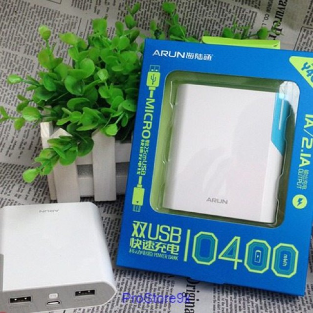 - Pin dự phòng chính hãng Arun 10400mah- Thiết kế nhỏ gọn , đẹp mắt