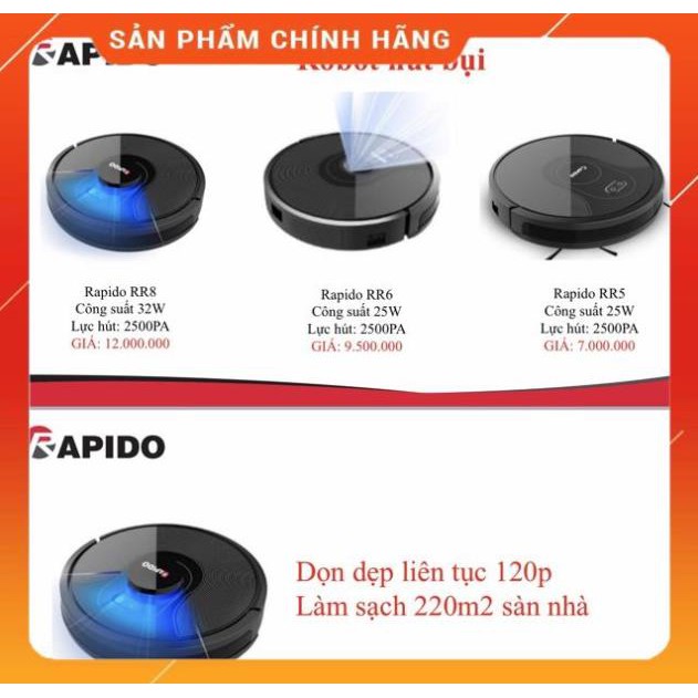 Thiết Bị Điện Gia Dụng > Thiết bị điện gia dụng nhỏ > Máy hút bụi & Thiết bị làm sạch sàn || (SALE) Robot hút bụi và lau nhà RR6 RAPIDO chính hãngCòn hàng