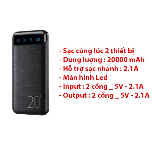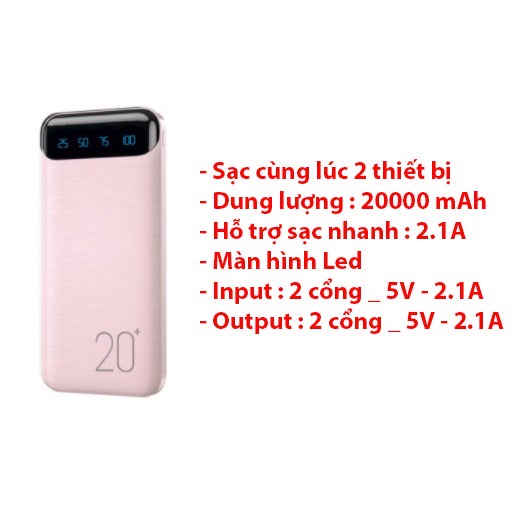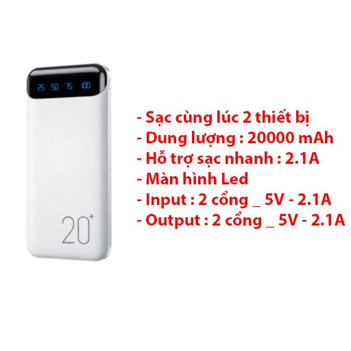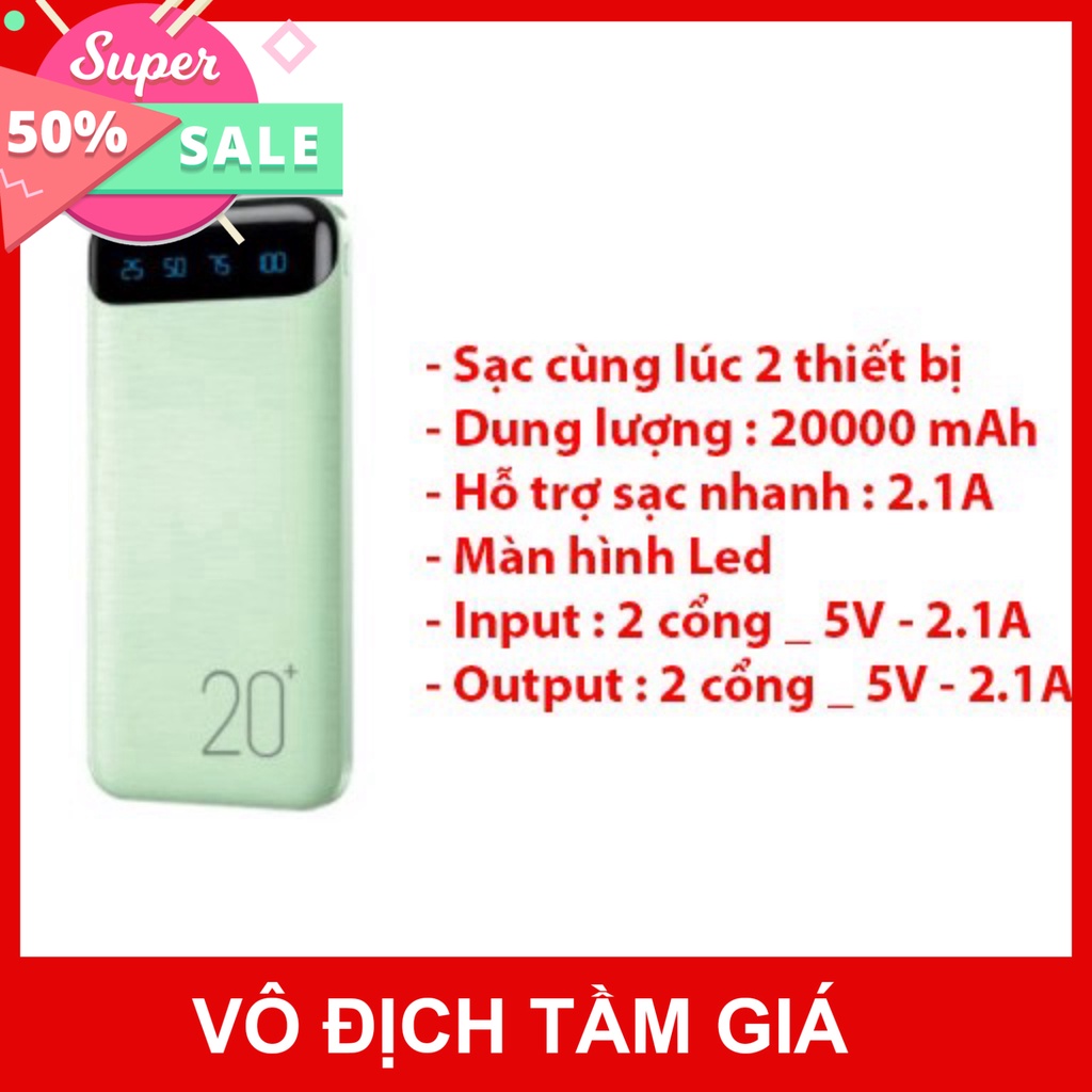 - Sạc dự phòng 10.000mAh-20000mah nhỏ gọn thời trang Wk 161/163 sạc 2 thiết bị cùng lúc.