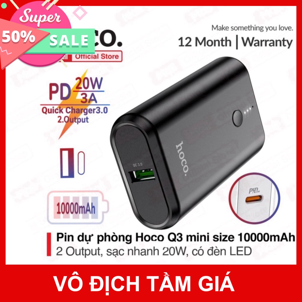 Sạc Dự Phòng Siêu Tốc 20W Mini Size Hoco Q3 New 10000mAh ✔Hỗ Trợ 2 Cổng Sạc Nhanh PD + QC3.0