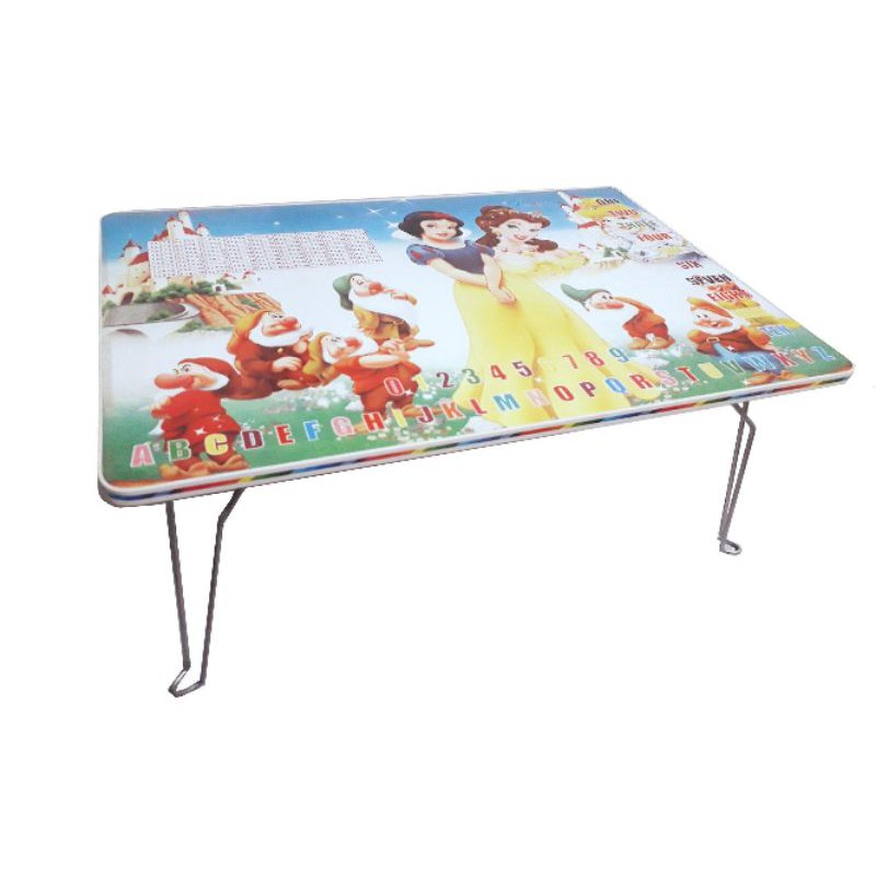 • Mặt bàn thiết kế đẹp mắt với nhiều hình ảnh và màu sắc sinh động, những nhân vật hoạt hình, cảnh vật, con vật đặc sắc. Đặc biệt mặt bàn còn có in hình bảng chữ caia, số tiếng anh, và bảng cửu chương giúp bé thuận tiện học tập.