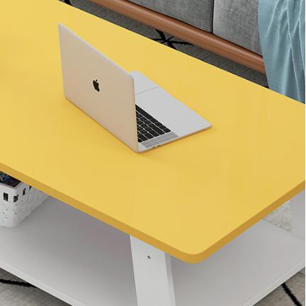 - Chất liệu: Gỗ MDF phủ Min/ Độ dày: mặt bàn trên màu Vàng gỗ 17mm, mặt bàn dưới màu Trắng gỗ 12mm.
