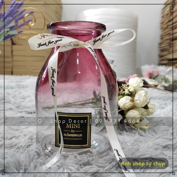 Giới thiệu [Sale Sập Sàn] Lọ hoa, bình hoa thủy tinh Mini Flower Plus Cổ Thắt Nơ nhiều màu trang trí nội thất Vintage
