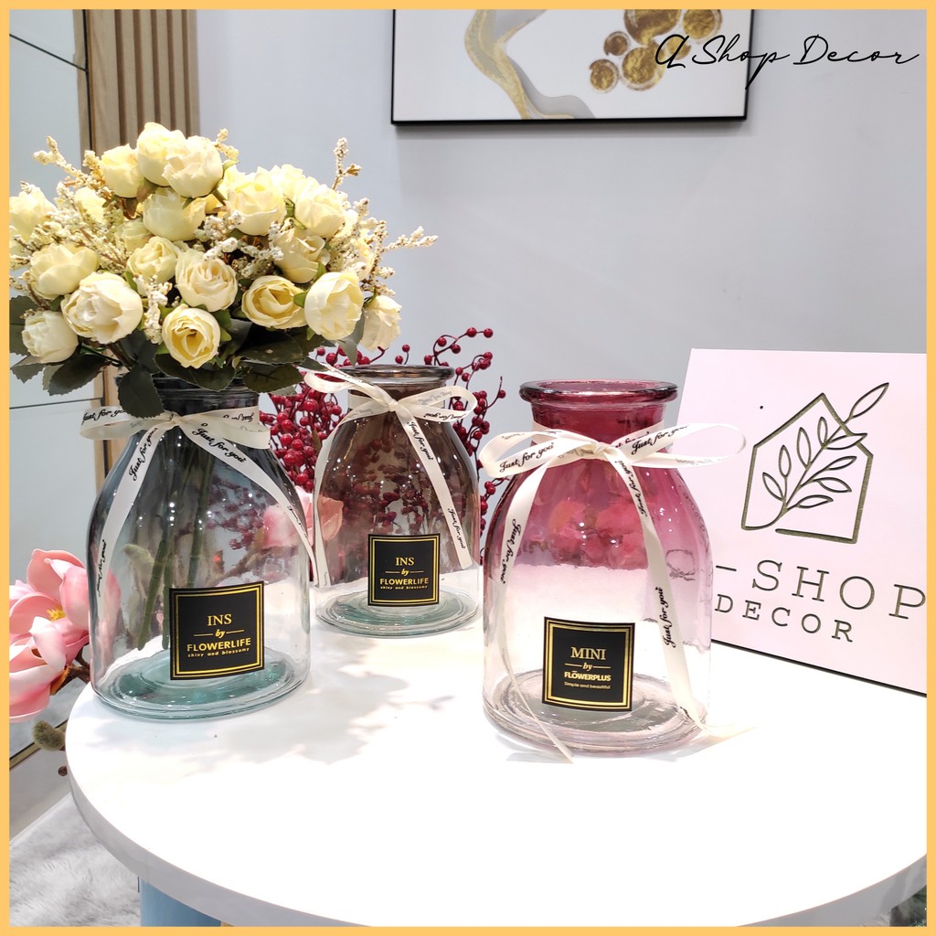 Nhà cửa & Đời sống > Trang trí nhà cửa > Bình trang trí || [Sale Sập Sàn] Lọ hoa, bình hoa thủy tinh Mini Flower Plus Cổ Thắt Nơ nhiều màu trang trí nội thất VintageCòn hàng