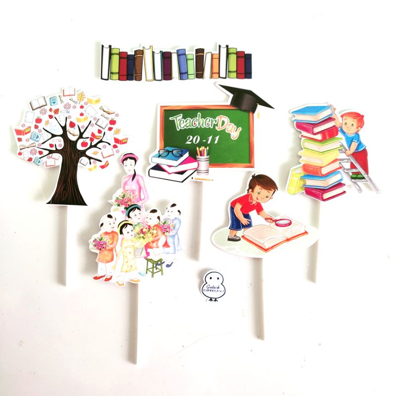 Bộ sản phẩm gồm 6 hình cắm giấy cứng loại 1 in chất liệu đẹp dùng trang trí bánh kem tặng thầy cô giáo