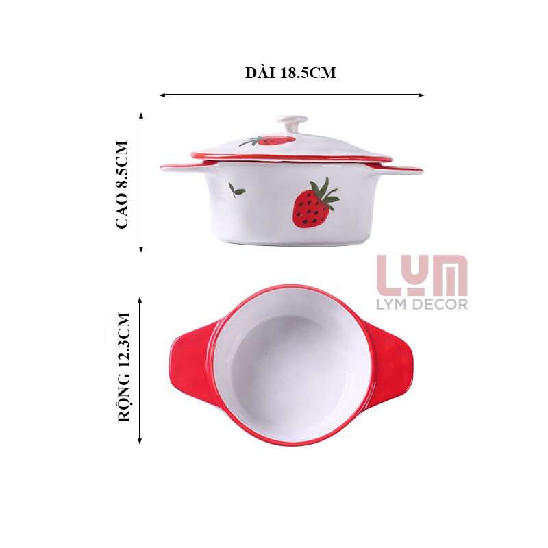 Nhà cửa & Đời sống > Dụng cụ nhà bếp > Nồi || (SALE SHOCK) Thố nướng có nắp vẽ tay, nồi sứ dâu tây phong cách Bắc Âu- Sứ cao cấp xuất khẩuCòn hàng