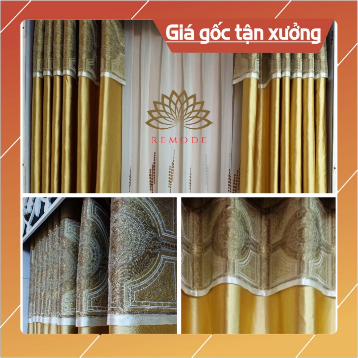 [SALE SỐC 50%] Rèm cửa❤️FREESHIP❤️Rèm cửa phòng khách tông màu ánh vàng đồng hoàng gia, phối yếm gấm kim tuyến