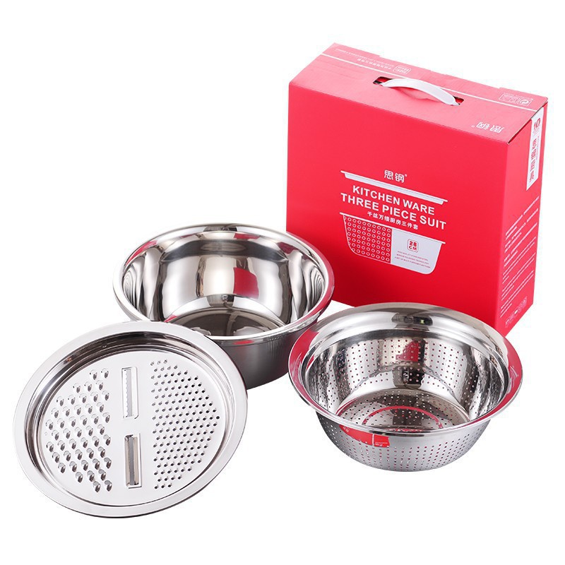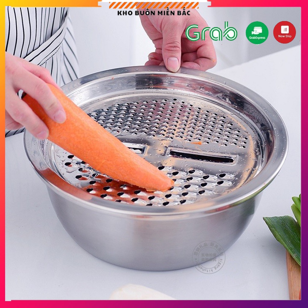 Bộ bao gồm : 01 Mặt nạo nhiều kiểu, 01 Rổ inox, 01 Chậu inox 100% cao cấp dày dặn