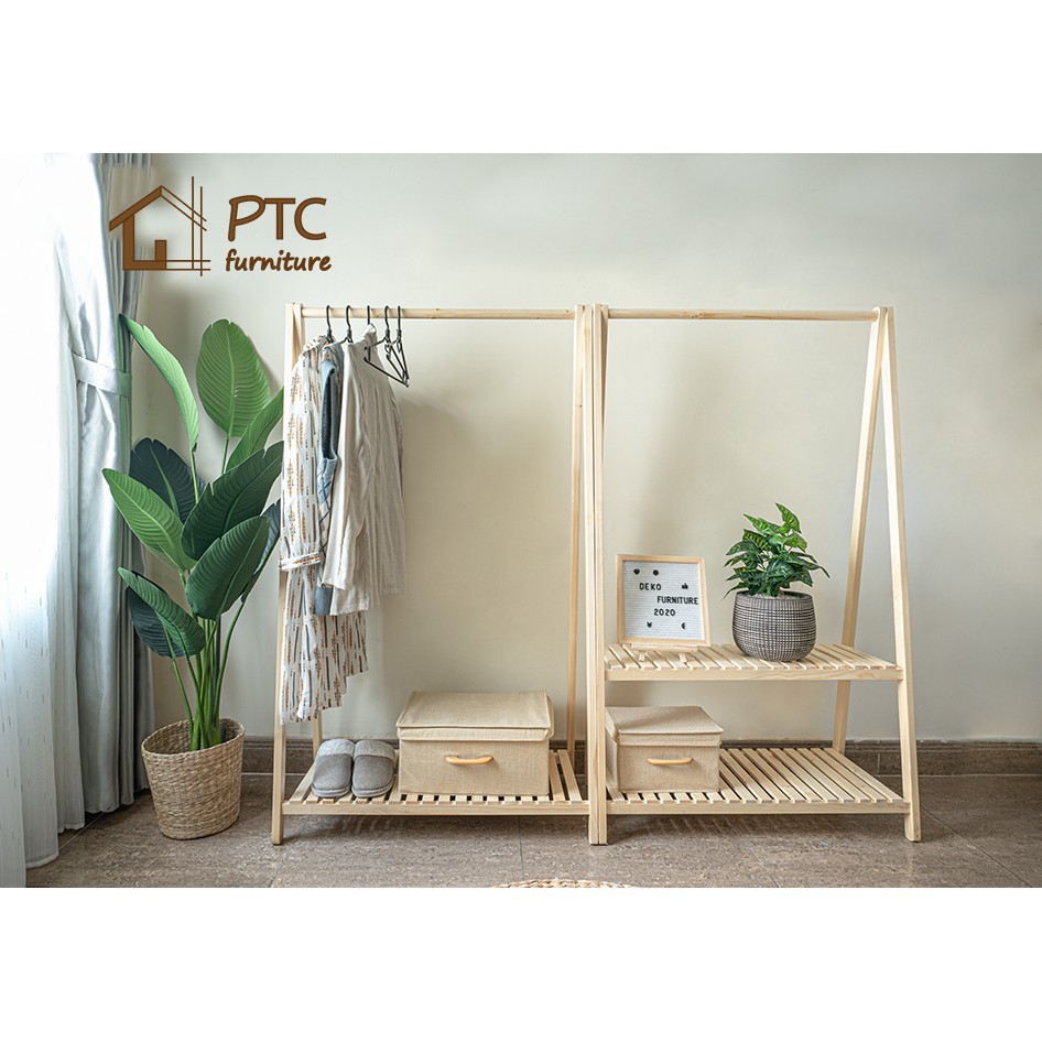 Giới thiệu [ Sale Sốc ] Giá Treo Quần Áo 1 Tầng Gỗ Thông PTC FURNITURE Màu Vân Gỗ Nội Thất Lắp Ráp Phong Cách Hàn Quốc