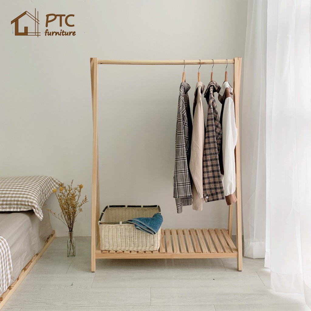 [ Sale Sốc ] Giá Treo Quần Áo 1 Tầng Gỗ Thông PTC FURNITURE Màu Vân Gỗ Nội Thất Lắp Ráp Phong Cách Hàn Quốc