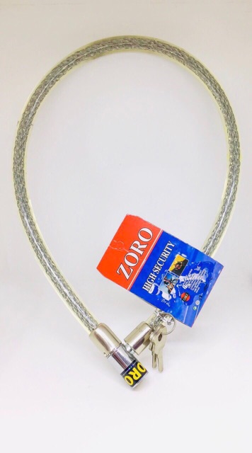 Sản phẩm khoá dây sử dụng chìa mang thương hiệu ZORO. Được sản xuất theo dây chuyền công nghệ mỹ.Khoá gồm 2 lớp: bên ngoài là lớp nhựa dẻo, bên trong là lớp cáp được tào thành từ những sợi cáp nhỏ tạo nên sự dẻo dai và chắc chắn cho khoá