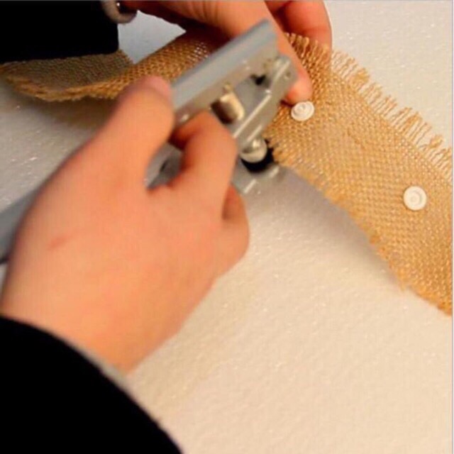 Đặt cúc vào đúng vị trí và bấm kìm với lực vừa đủ.