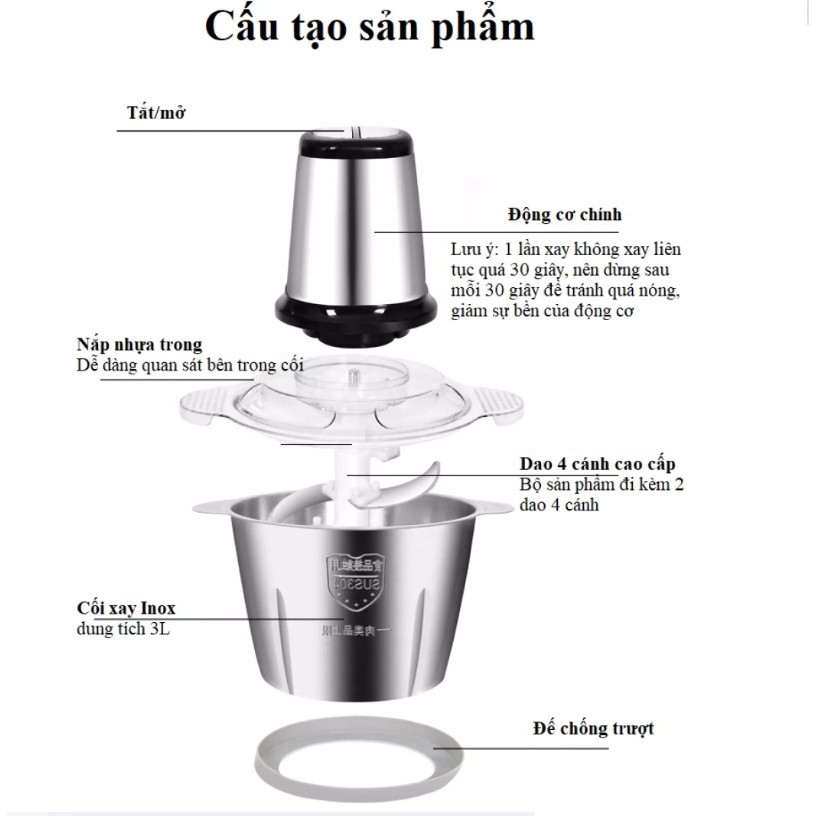 * Máy có công suất 200-300W kết hợp với lưỡi dao inox giúp xay thịt và các loại hạt, củ quả nhuyễn mịn mà tuyệt nhiên không làm thất thoát chất dinh dưỡng có trong thực phẩm.