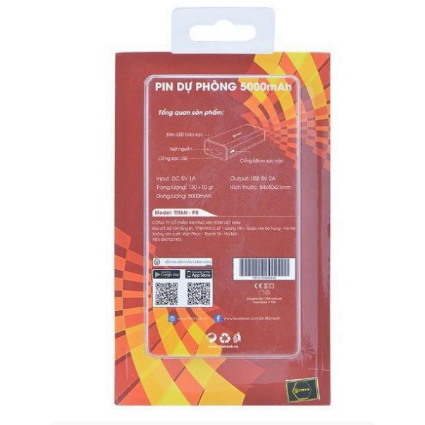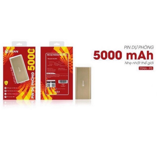 - Pin dự phòng chính hãng Titan P5 5.000 mAh – Chiếc pin dự phòng siêu nhẹ, bền- Pin dự phòng là giải pháp cho những chiếc Smartphone có dung lượng pin thấp.