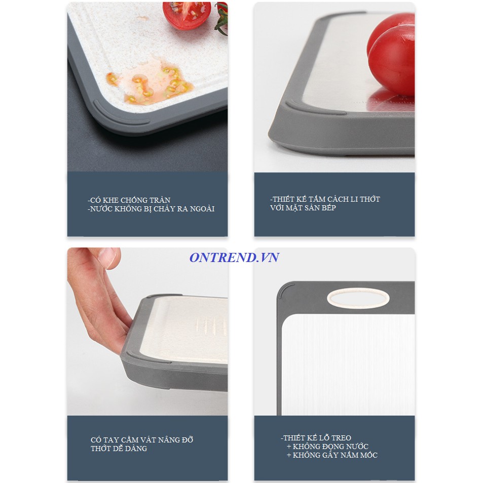 [SALE SỐC]Thớt inox 304 kháng khuẩn đa năng 2 mặt inox+lúa mạch tiện dụng cho căn bếp của gia đình