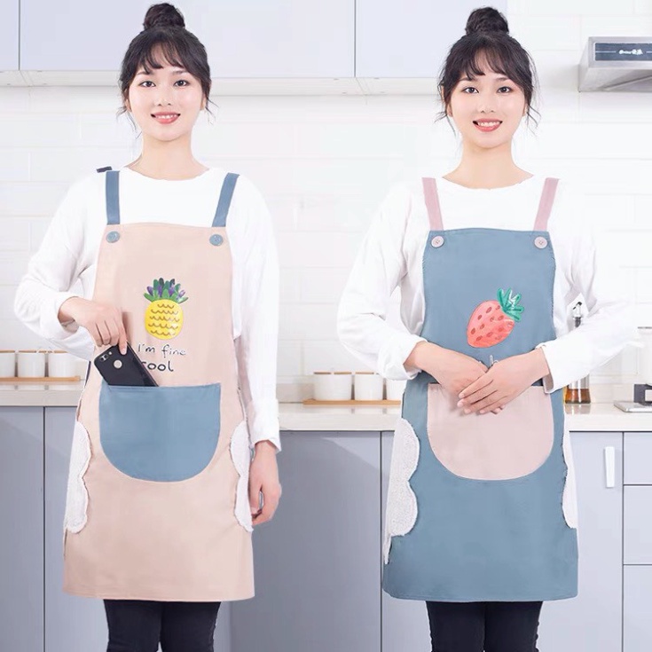 + Tạp dề được làm từ chất liệu polyester dày dặn, chống bám bẩn, chống nước