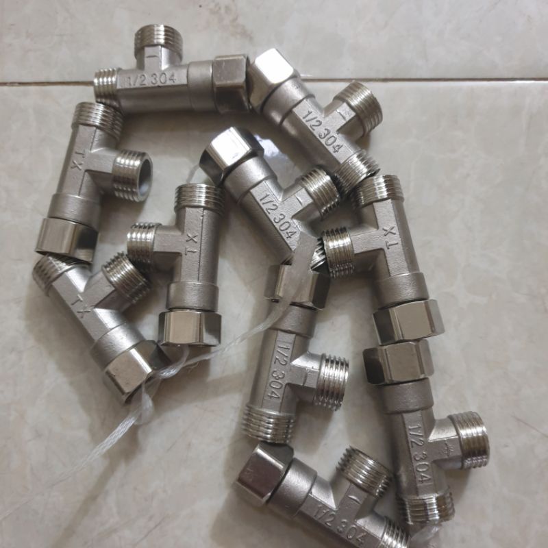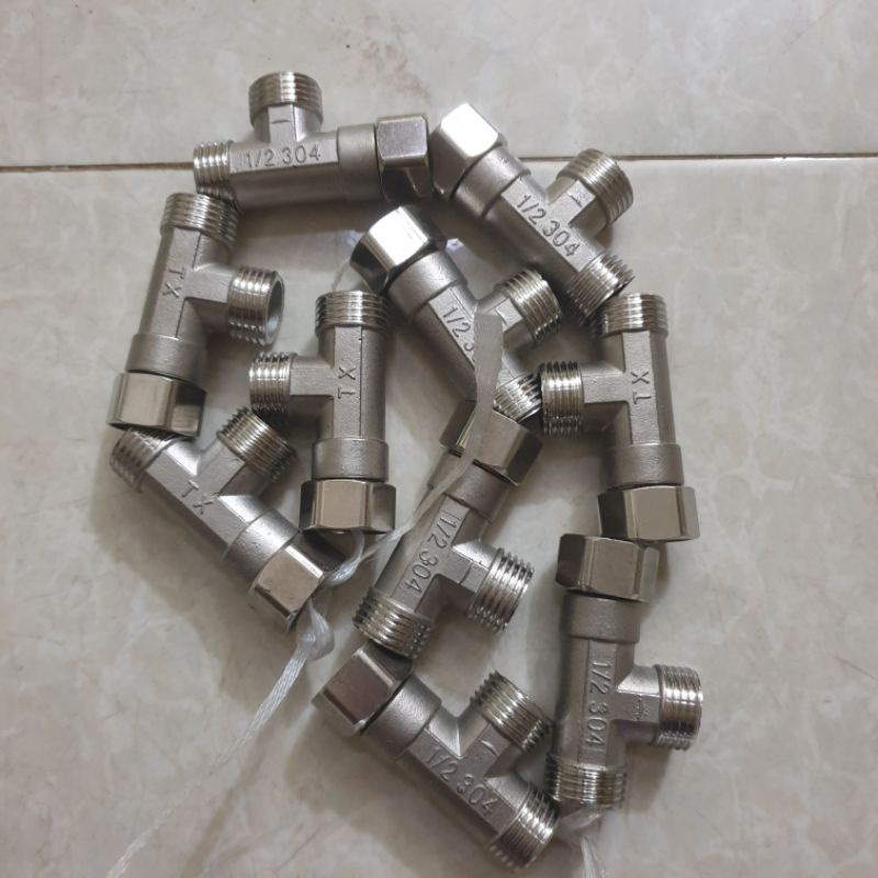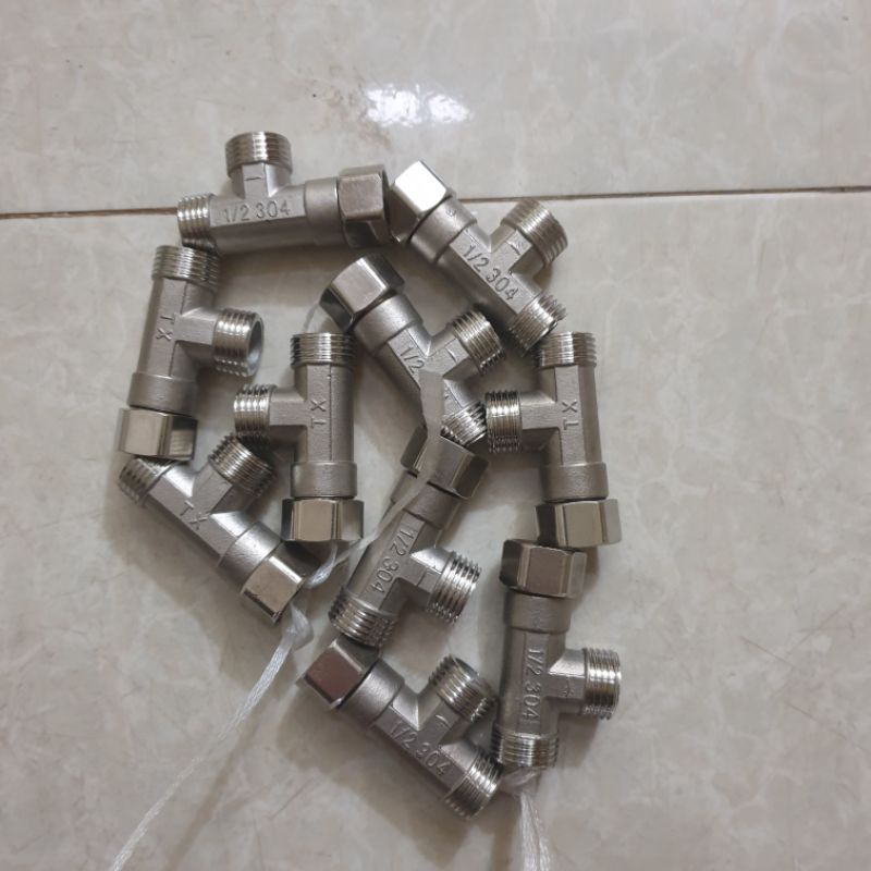 - Đầu nối tê cầu ren trong ren ngoài để kết nối hai ống ren với cùng đường kính hoặc đường kính khác nhau.
