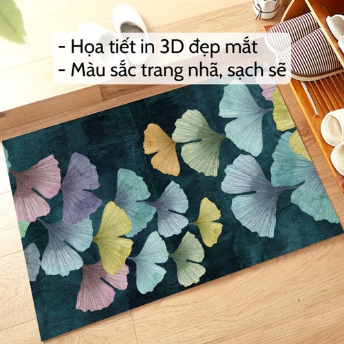– Thảm 3D lót sàn chống trượt nhiều họa tiết được làm từ chất liệu vải nhung với đặc tính siêu thấm hút nước và bụi bẩn, giữ nhà cửa luôn khô ráo, sạch sẽ.