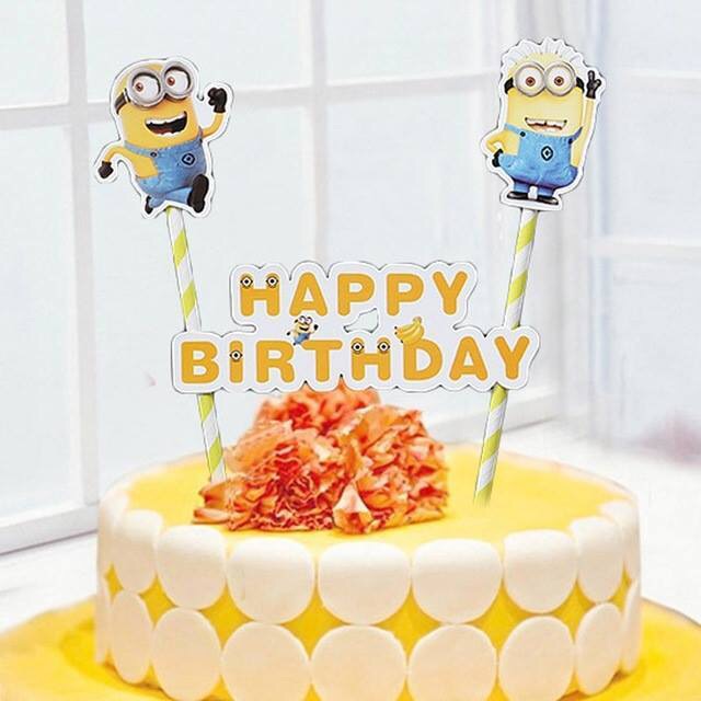 ✔️Chất liệu giấy, gồm: 2 que dựng bìa cứng, 2 nhân vật hoạt hình dán 2 bên, 1 bìa chữ Happy birthday và miếng băng keo dính vào que.