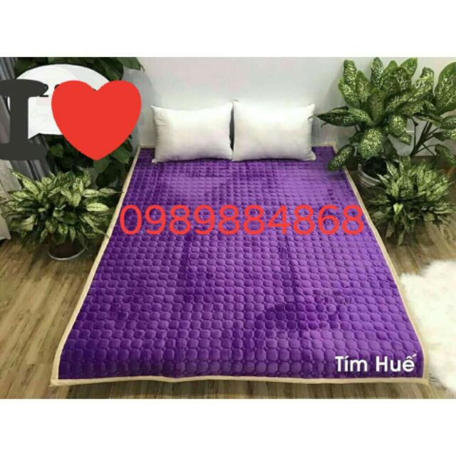 Thảm nhung chần bông 3 lớp có thiết kế tinh tế với các đường may chần và nẹp vải xung quanh giúp cho tấm trải đệm vừa chắc chắn, vừa có tính thẩm mỹ cao.