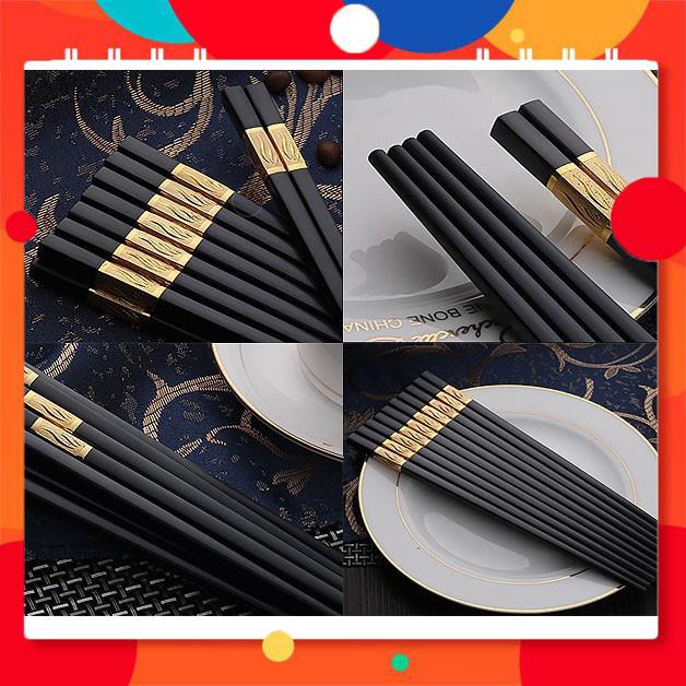 [ SALE TƯNG BỪNG] Bộ 10 đôi đũa ăn hợp kim bọc vàng cao cấp