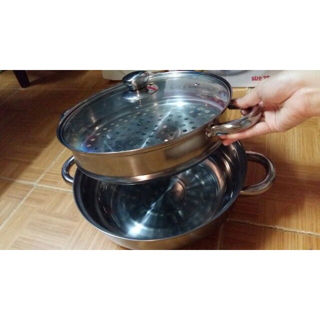 Nhà cửa & Đời sống > Dụng cụ nhà bếp > Nồi || [ SALE TƯNG BỪNG] Nồi hấp inox 2 tầng 28cmCòn hàng