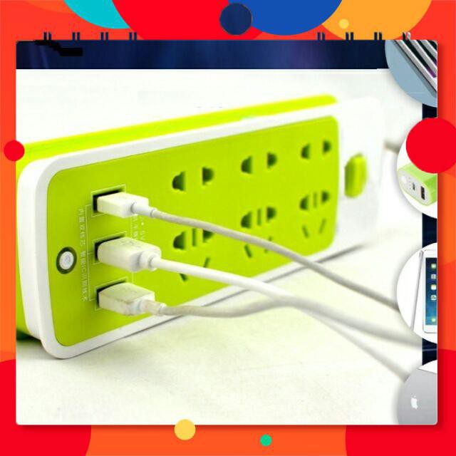 [ SALE TƯNG BỪNG] Ổ cắm điện 1,6m 6 jack cắm và 3 cổng usb siêu thông minh(Xanh lá).