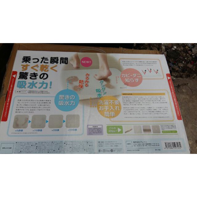 Công dụng: Chuyên dùng để thấm khô nước sau khi ra khỏi nhà tắm, nhà vệ sinh hoặc dùng để thấm khô chân tùy theo nhu cầu sử dụng. Bằng Diatomite, một vật liệu hóa thạch đặc biệt, có vô vàn lỗ kích thước siêu nhỏ chỉ 0.1 – 0.2µm(micrômét), nên thấm nước và bay hơi cực nhanh cho bề mặt thảm luôn khô thoáng.