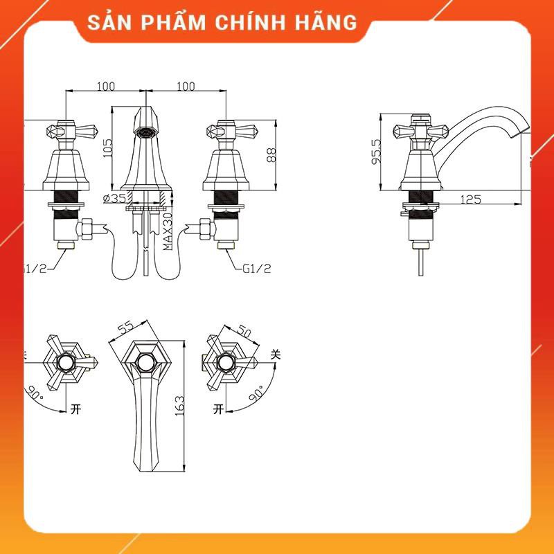 Vòi rửa mặt nóng lạnh 3 lỗ
