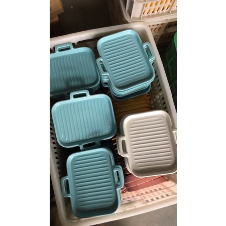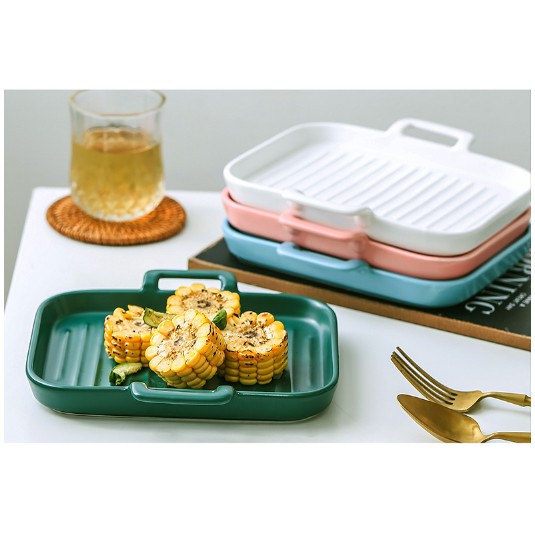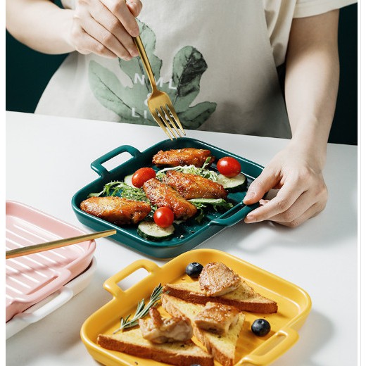 Nhà cửa & Đời sống > Bộ đồ bàn ăn > Dĩa || (SALE XẢ KHO) Khay, đĩa nướng vuông sứ 2 quai 20cm, men mờ màu pastel - hàng không chì xuất ÂuCòn hàng