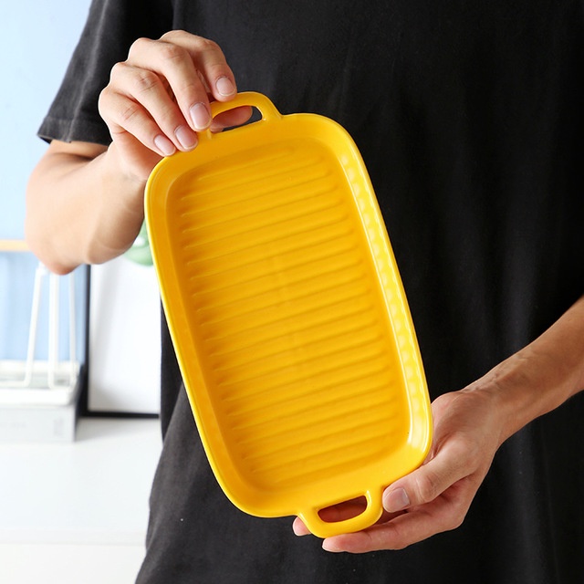 Khay đựng đồ ăn hình vuông gân nổi - Hàng xuất châu ÂuChất liệu: Gốm sứ cao cấp không chứa chì, chịu lực tốt, chịu nhiệt cao (250 độ C)