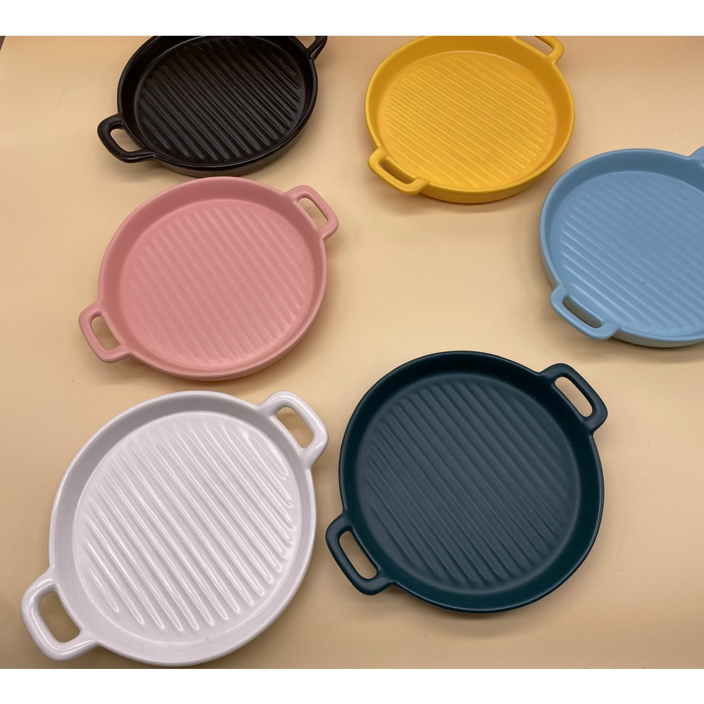 Giới thiệu (SALE XẢ KHO) Khay, đĩa nướng vuông sứ 2 quai 20cm, men mờ màu pastel - hàng không chì xuất Âu