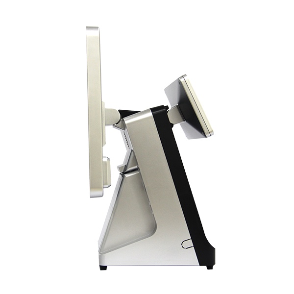 SC-120B là một dòng máy POS bán hàng cao cấp của Shangchen Việt Nam. Thiết kế máy đẹp mắt với màu bạc bóng sang trọng, 2 màn hình LED cảm ứng hiện đại với màn hình chính kích thước 15 inch, độ phân giải 1024×768 pixel, chức năng touch-screen mượt mà kèm theo độ sắc nét cực rõ ràng. Màn hình phụ 8 inch sẽ quay về phía khách hàng giúp theo dõi được toàn bộ thông tin mua hàng trong suốt quá trình thanh toán để hạn chế sai sót gây mất thời gian.SC-120B kết nối đa dạng với các thiết bị ngoại vi: cổng kết nối USB, VGA, LAN, COM; cổng Serial, Audio, Input (MIC), Output (Audio) giúp kết nối với máy quét mã vạch, máy in hóa đơn hay két tính tiền. Sản phẩm máy POS bán hàng SC-120B có bộ nhớ lên tới 64G giúp lưu trữ thông tin và dữ liệu trở nên dễ dàng hơn, ngoài ra bộ xử lý Core i3 CPU giúp máy hoạt động tối đa hiệu suất