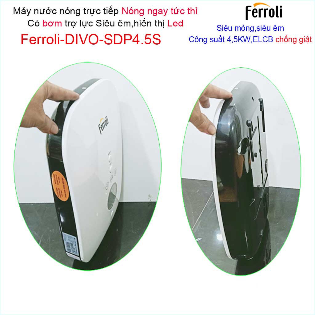 Sales Máy nước nóng Ferroli Divo SDP 4.5S có bơm chống giật, Bình nóng trực tiếp chính hãng ổn định nhiệt độ nước nóng