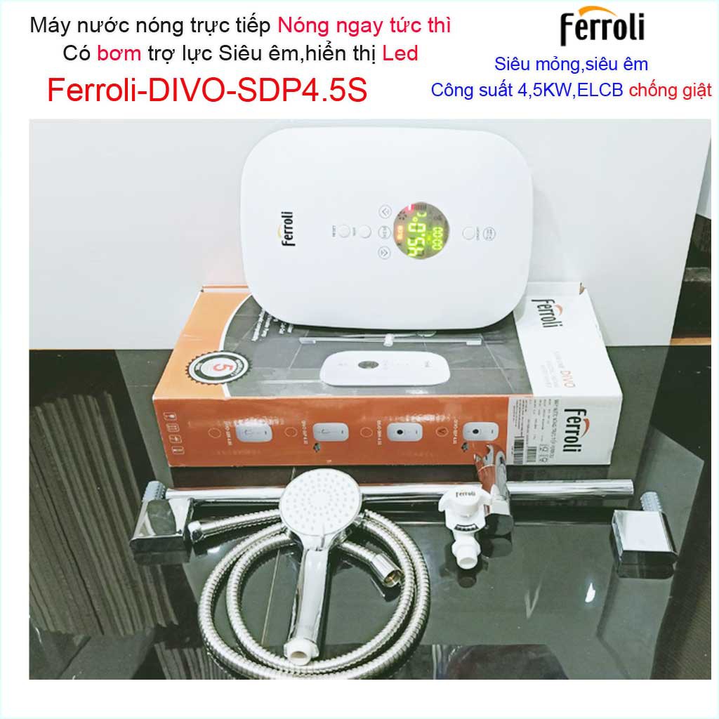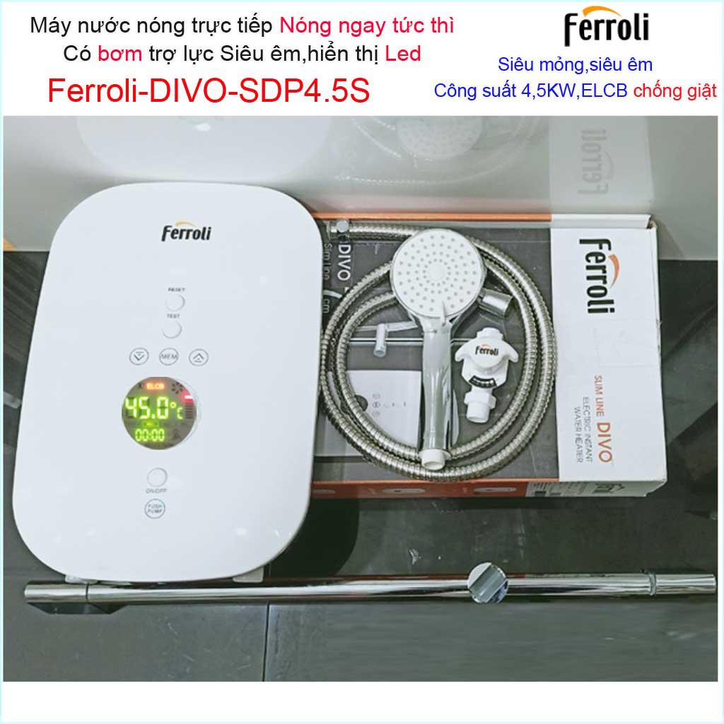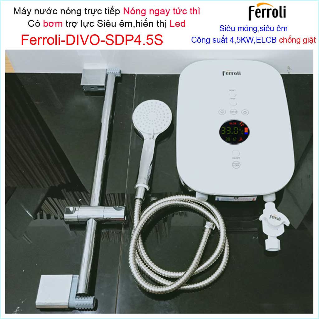 Giới thiệu Sales Máy nước nóng Ferroli Divo SDP 4.5S có bơm chống giật, Bình nóng trực tiếp chính hãng ổn định nhiệt độ nước nóng