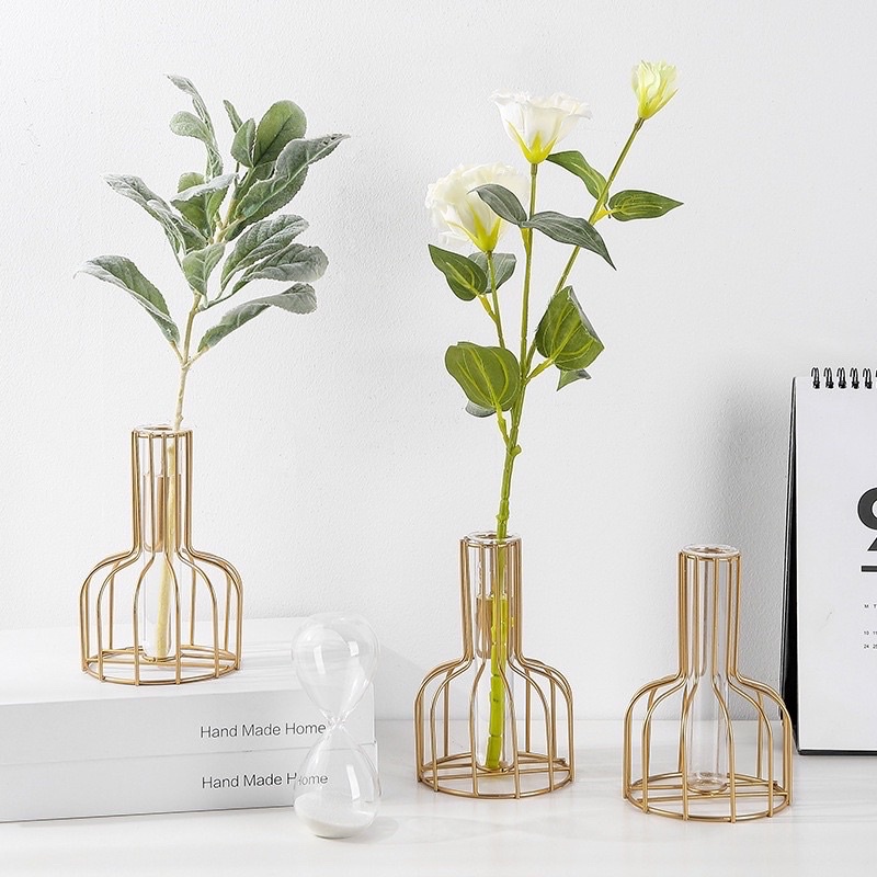 Bình bằng thủy tinh trong suốt chất lượng cao, với thiết kế độc đáo của khung đỡ kim loại, làm cho cây của bạn trông đẹp hơn.