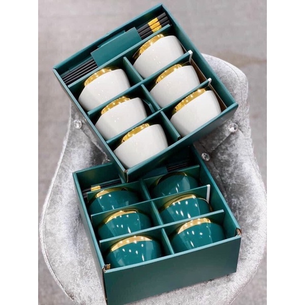 ❤️Bộ 6 bát sứ + 6 Đũa viền mạ vàng cao cấp, tặng kèm đũa phong cách Nhật❤️✔Kích thước bát: 11.7*6.1