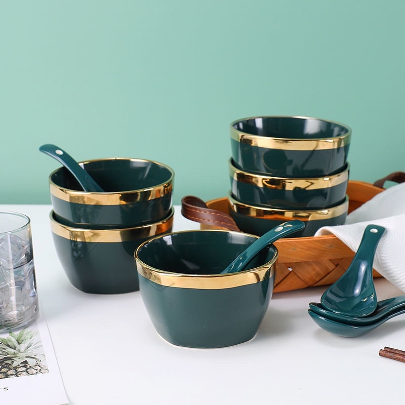 Nhà cửa & Đời sống > Bộ đồ bàn ăn > Tô || [Sẵn+Ảnh Thật] Set Bát HAPPY LIFE viền vàng phong cách Âu Châu màu sắc tinh tế hot nhất năm nay,Bát Sứ mới❤️Còn hàng