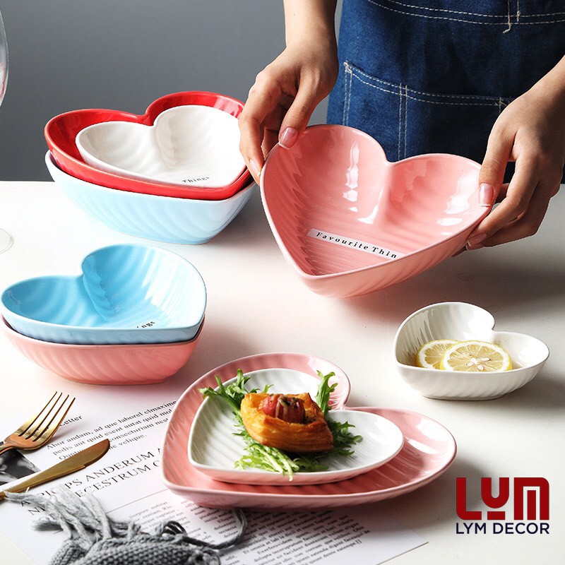 Nhà cửa & Đời sống > Bộ đồ bàn ăn > Dĩa || (SẴN) Bát đĩa trái tim lãng mạn phong cách Bắc Âu - Sứ cao cấp xuất khẩu không chì - Quà tặng lãng mạnCòn hàng