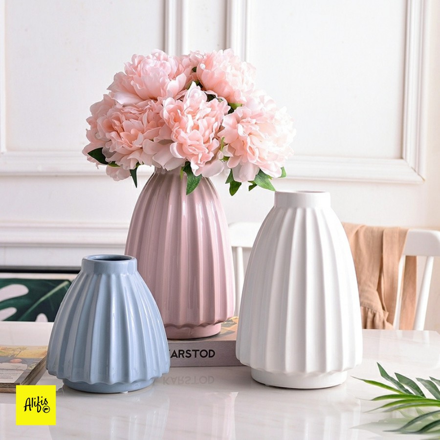 Giới thiệu Lọ hoa trang trí, bình bông cách điệu hình chân váy decor nhà - men sứ cao cấp Alifis