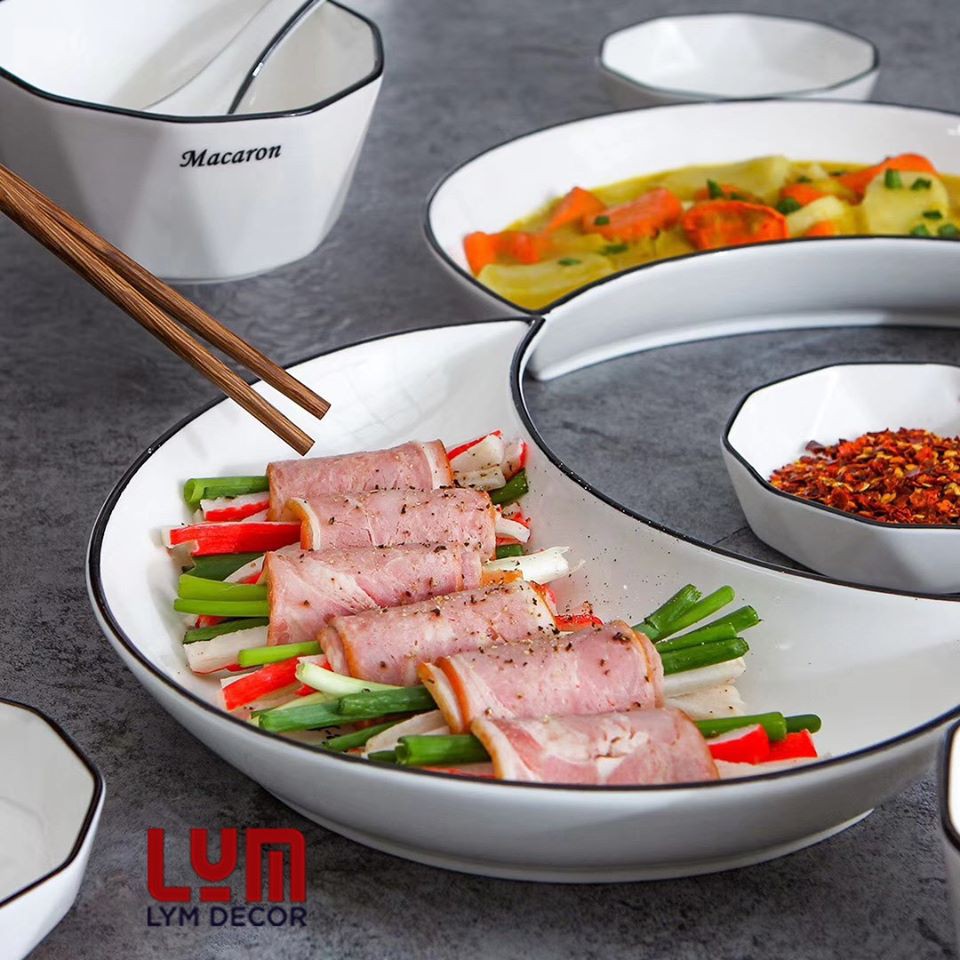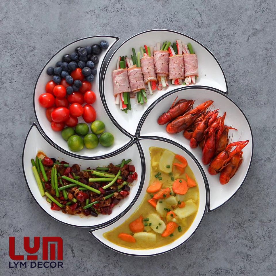 Bộ sứ hoa gồm có 5 đĩa hình trăng lưỡi liềm được ghép lại với nhau thành tạo hình bông hoa độc đáo và sáng tạo. Thích hợp sử dụng trong bữa cơm gia đình, đặt tiệc hay đựng bánh kẹo, trái cây mời khách....