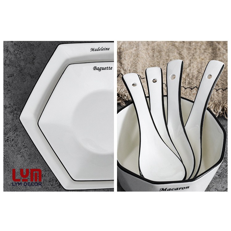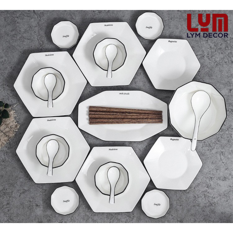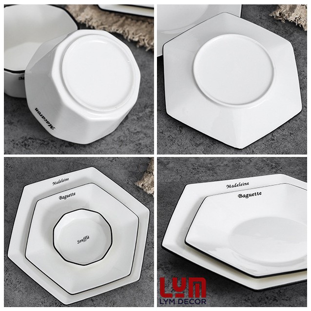 Nhà cửa & Đời sống > Bộ đồ bàn ăn > Dĩa || (SẴN) Bộ bát đĩa sứ kim cương trắng 21 món phong cách Bắc Âu - chén đĩa sứ trắng lục giác - Hàng xuất Âu (kèm đĩa cá)Còn hàng