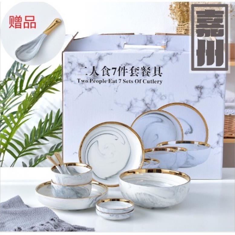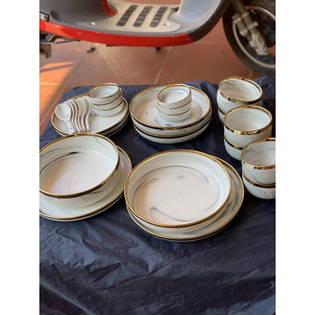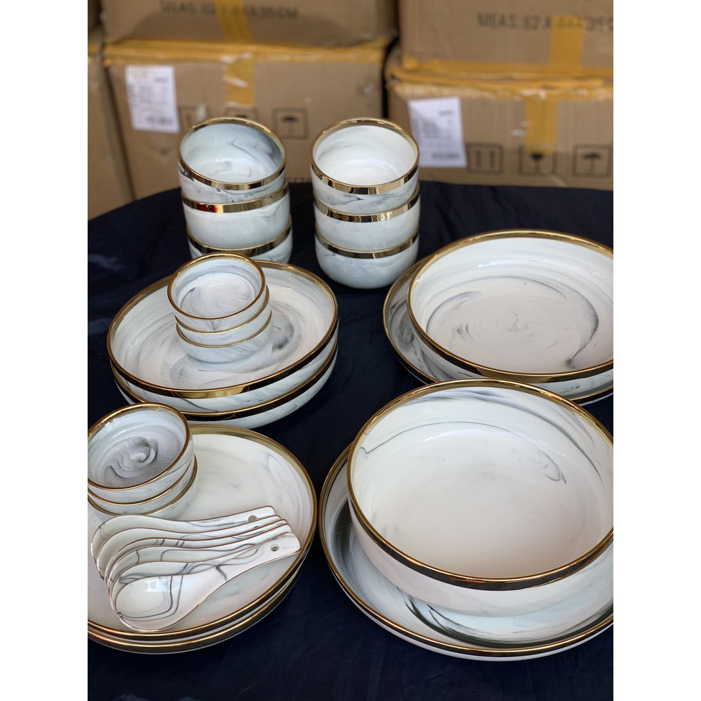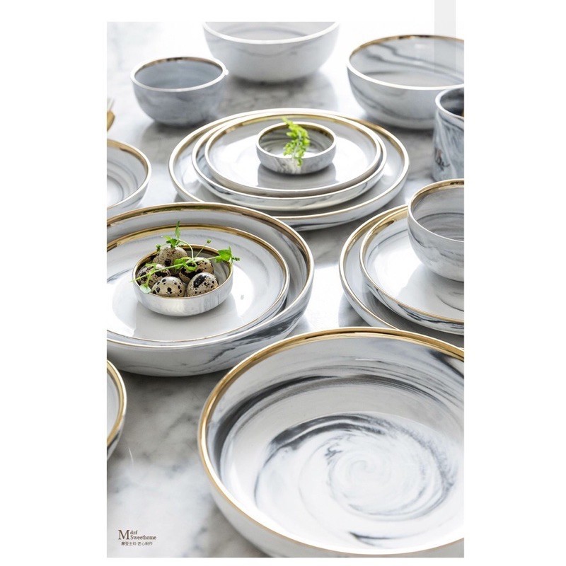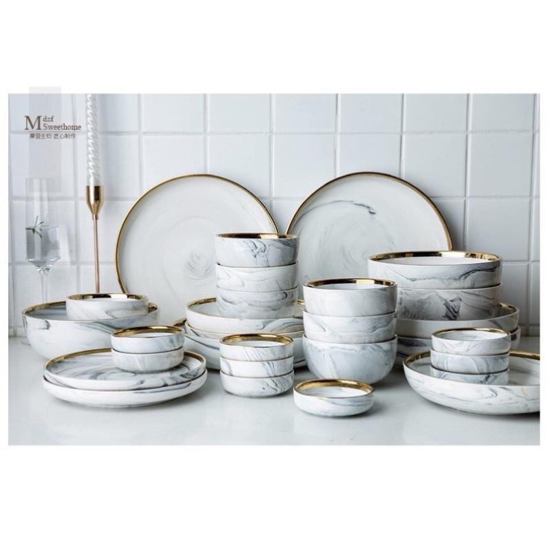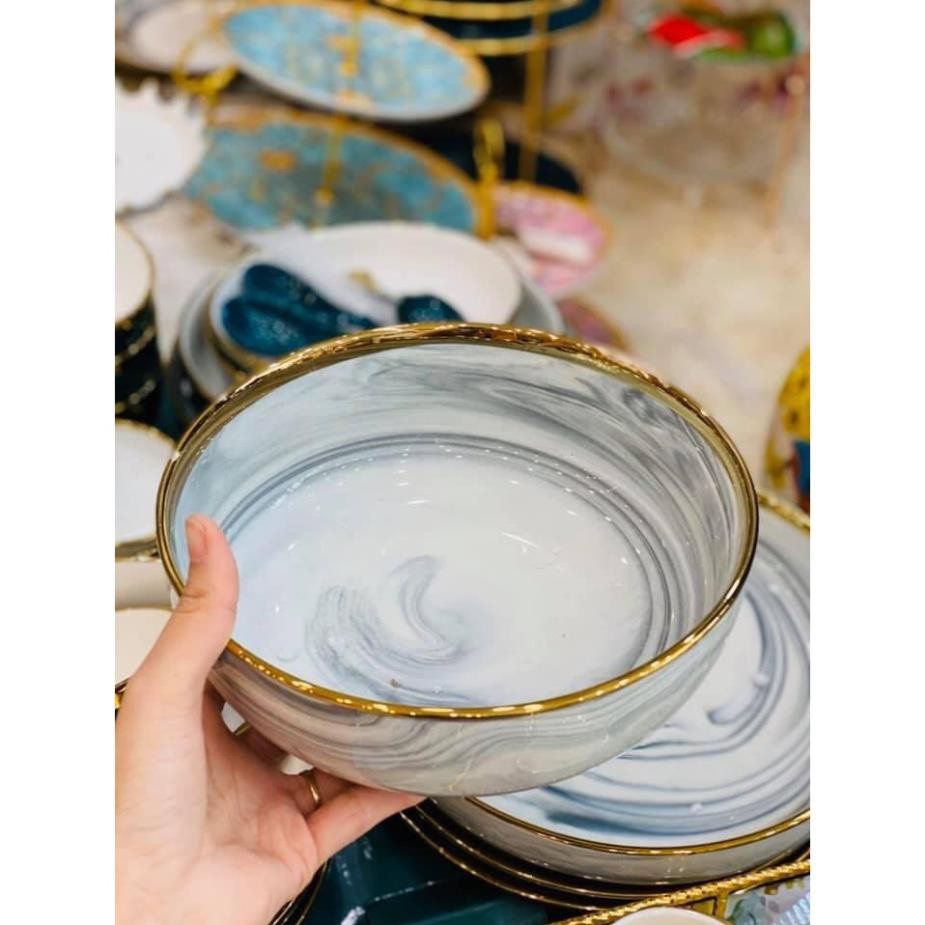 Nhà cửa & Đời sống > Bộ đồ bàn ăn > Tô || [Sẵn] Bộ bát đĩa sứ màu xám vân đá cao cấp,sang trọng-tặng kèm đũa.Còn hàng
